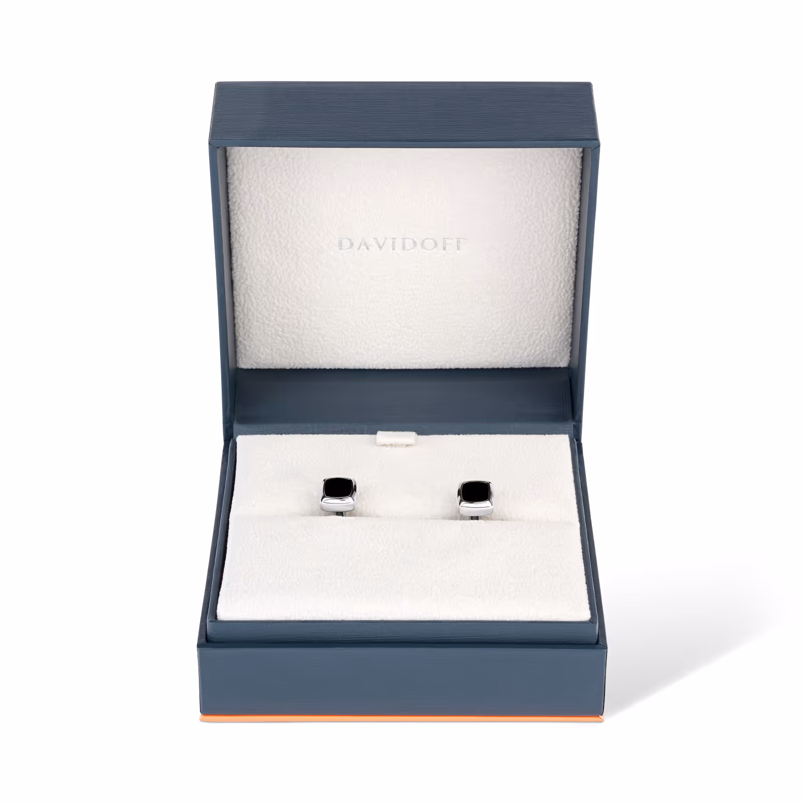 Crafted from stainless steel with sleek black lacquer accents, these mini square cufflinks offer a modern and refined aesthetic in a compact size. The fixed-back design ensures a clean, streamlined profile, while the DAVIDOFF Icon engraved on one side adds a subtle signature detail. Measuring 10 x 10 mm, they provide an understated yet sophisticated touch to any formal ensemble.