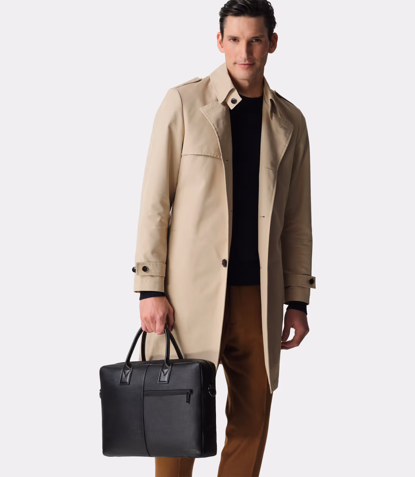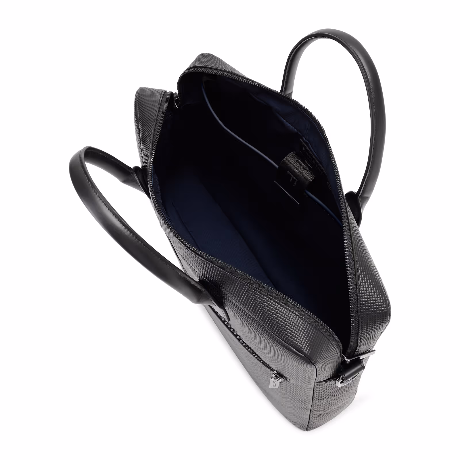 From the DAVIDOFF PARIS Collection, this black leather briefcase showcases a refined diamond pattern, inspired by the geometric beauty of the City of Light seen from above. Made in Italy, it features sleek gunmetal hardware, an adjustable logo strap, and a thoughtfully organized interior that combines Parisian elegance with modern business functionality.