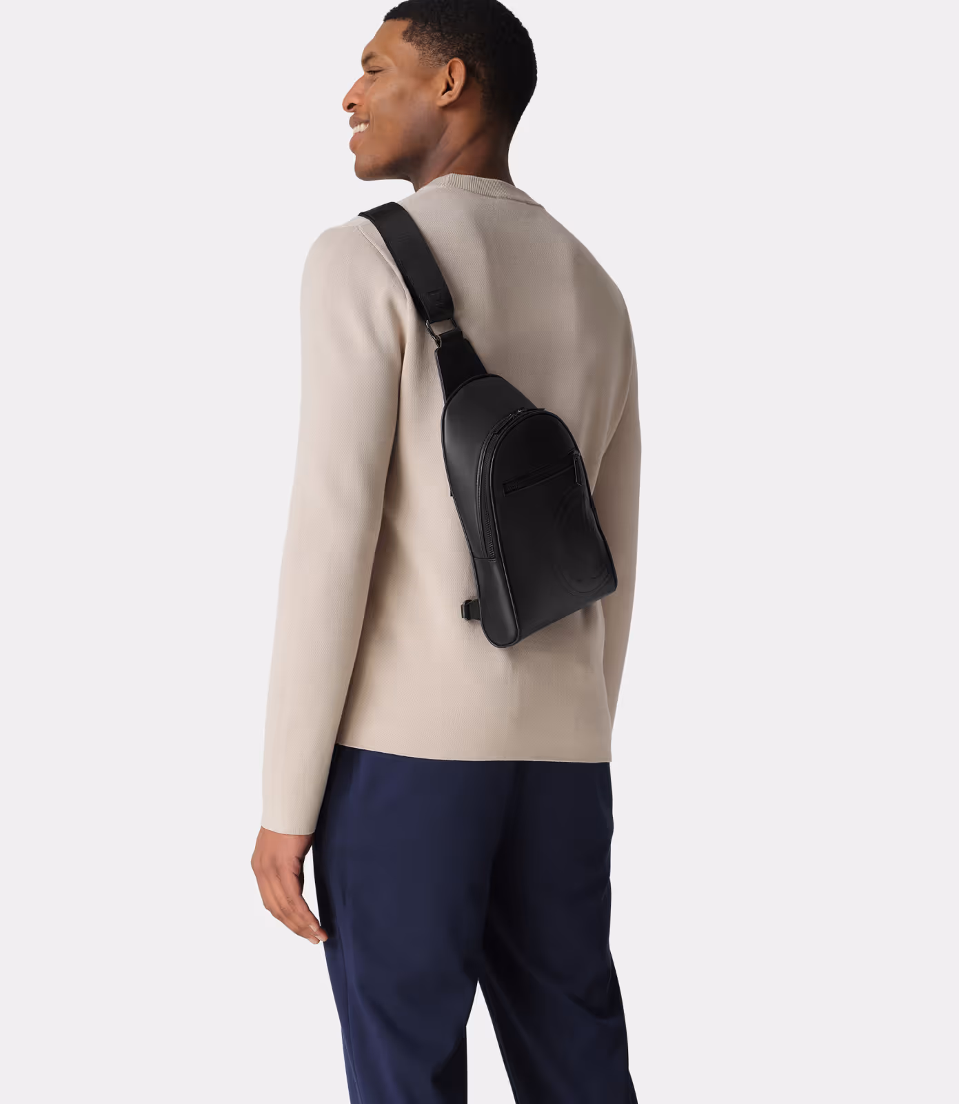 Discover the Beauty of the Unexpected with this DAVIDOFF crossbody bag, crafted in soft calf leather with a structured silhouette. Inspired by the timeless elegance of Venice, it features front and back zip pockets, signature hyphen-shaped pullers, and gunmetal accents. Made in Italy, it blends artisanal finesse with effortless everyday style.