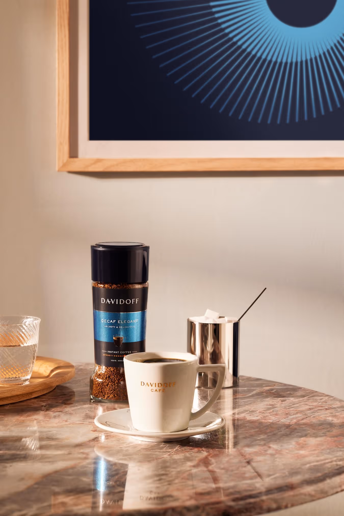 Enjoy this coffee masterpiece and experience a smooth, decaffeinated taste sensation. DAVIDOFF Decaf Elegant combines a medium roasting note with a gentle body to create an elegantly vivid coffee, rounded off with light caramel notes. 100 % Arabica, gently decaffeinated, full indulgence. A delightful treat for any time of day.